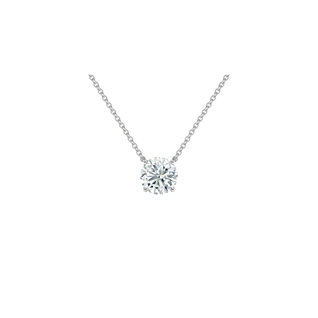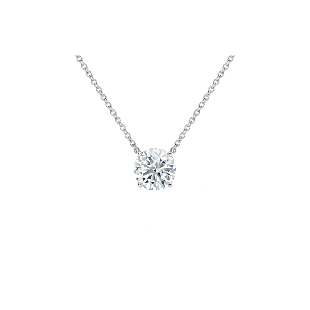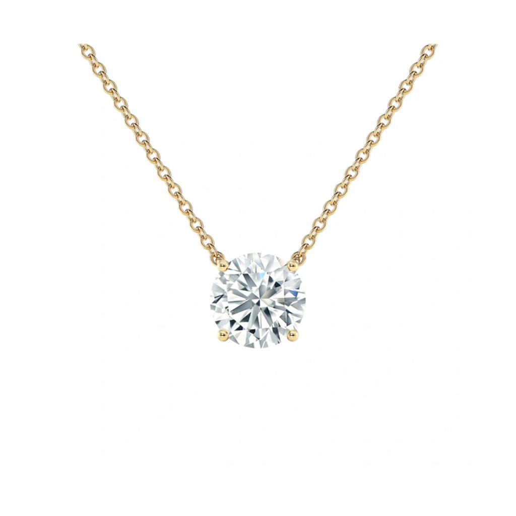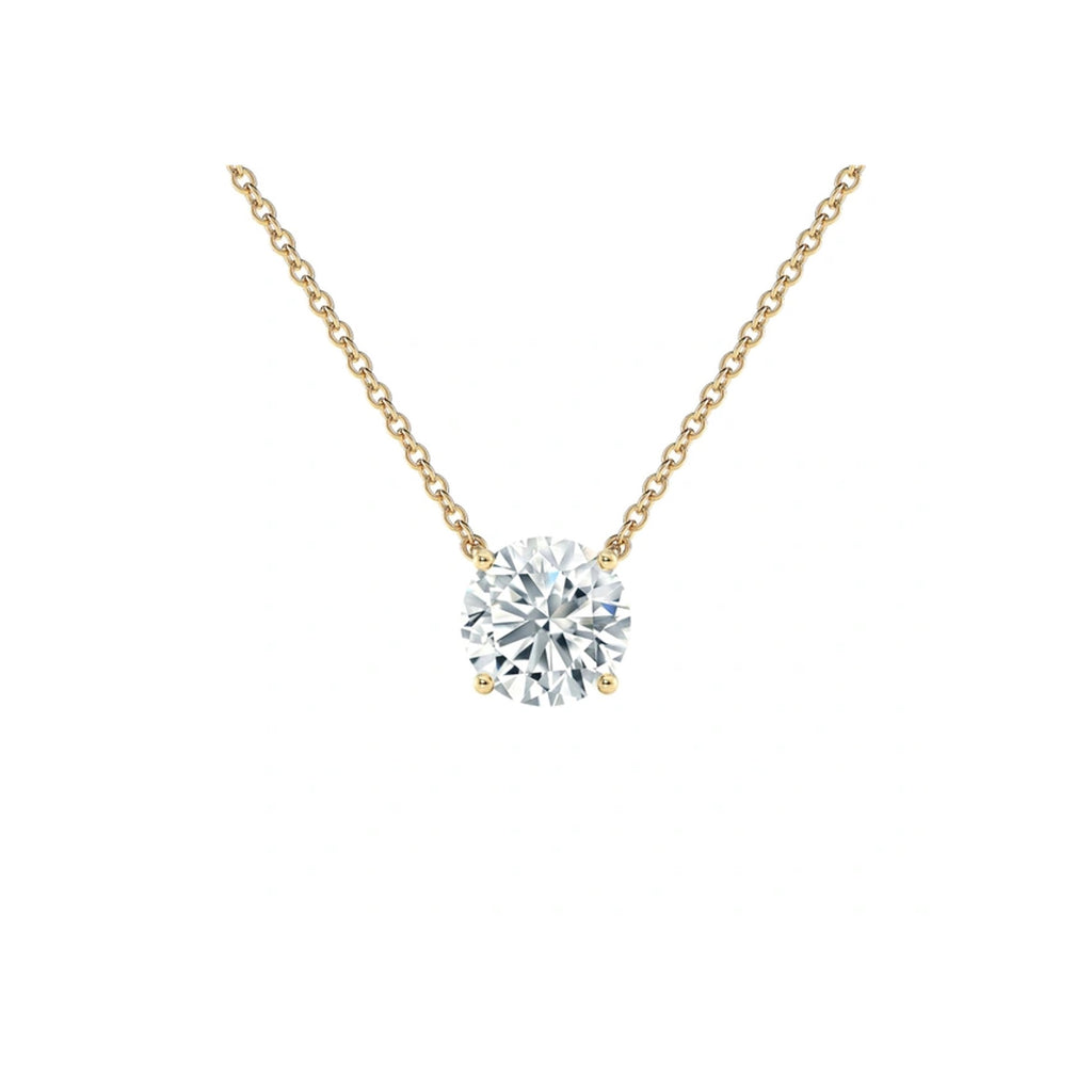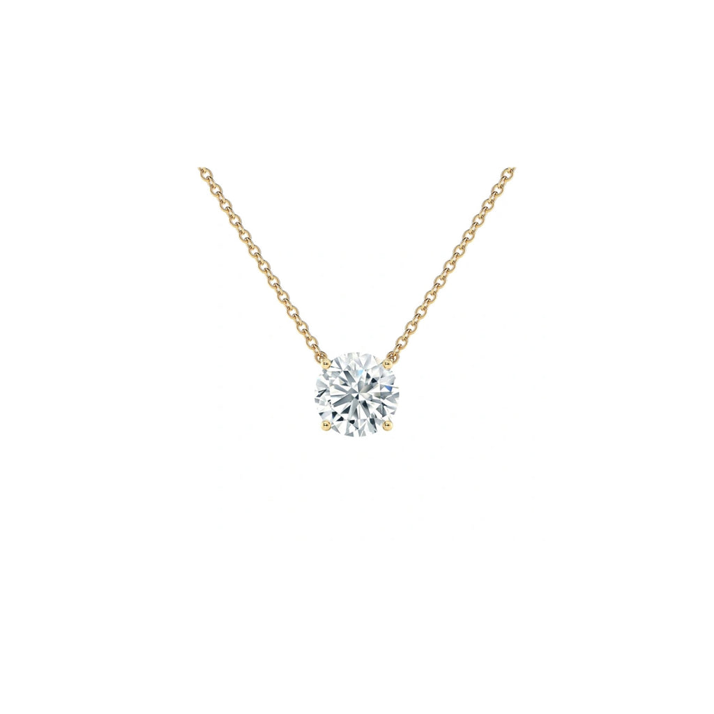 An 18-inch necklace featuring a prong-set, lab-grown round diamond solitaire. All set in 14K gold.