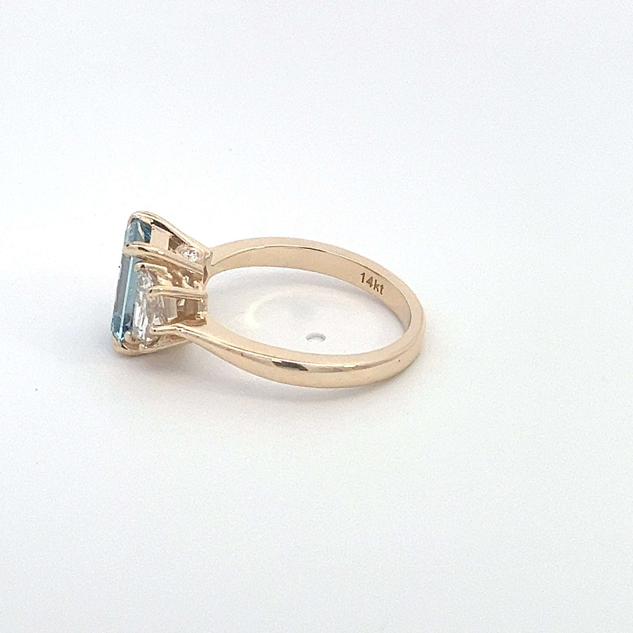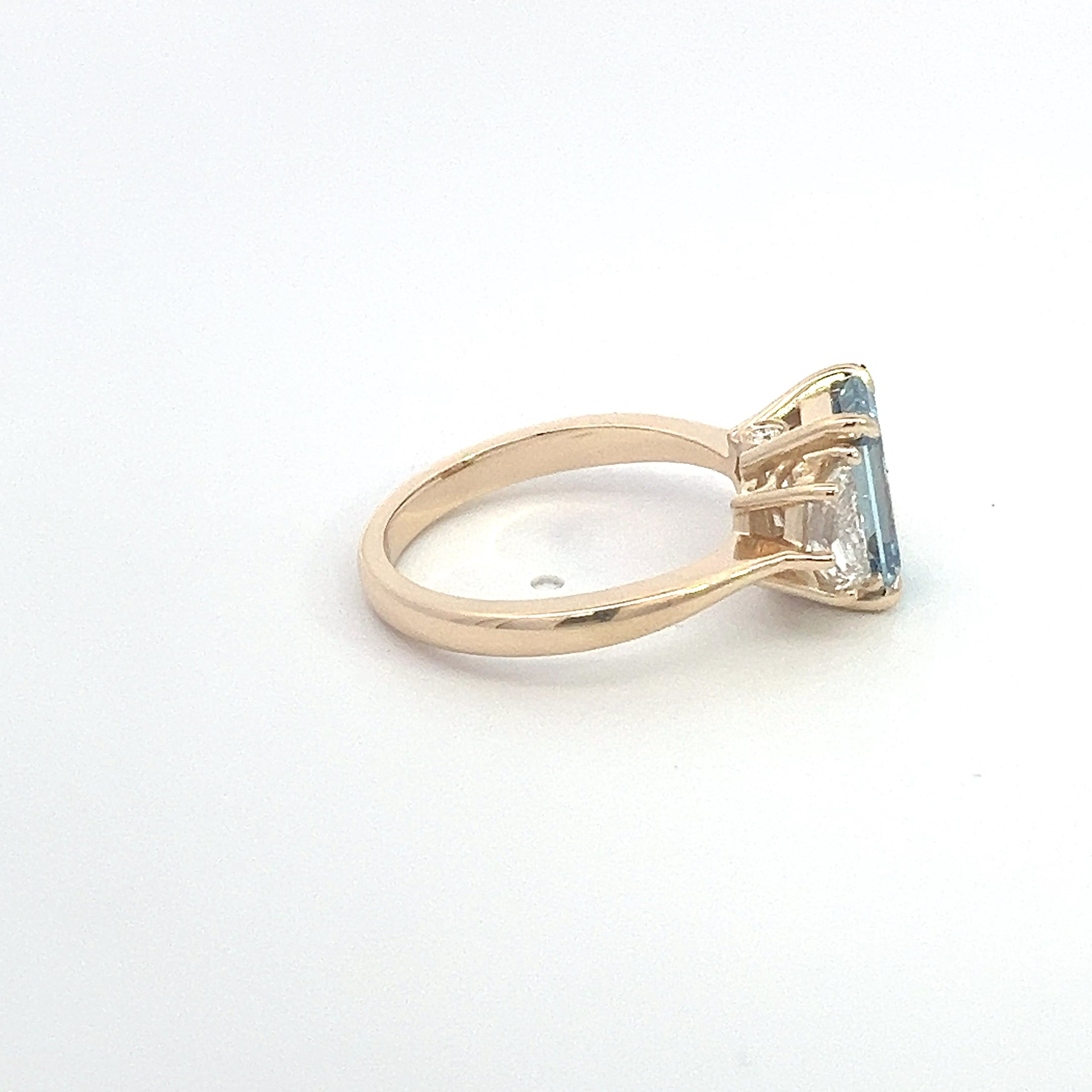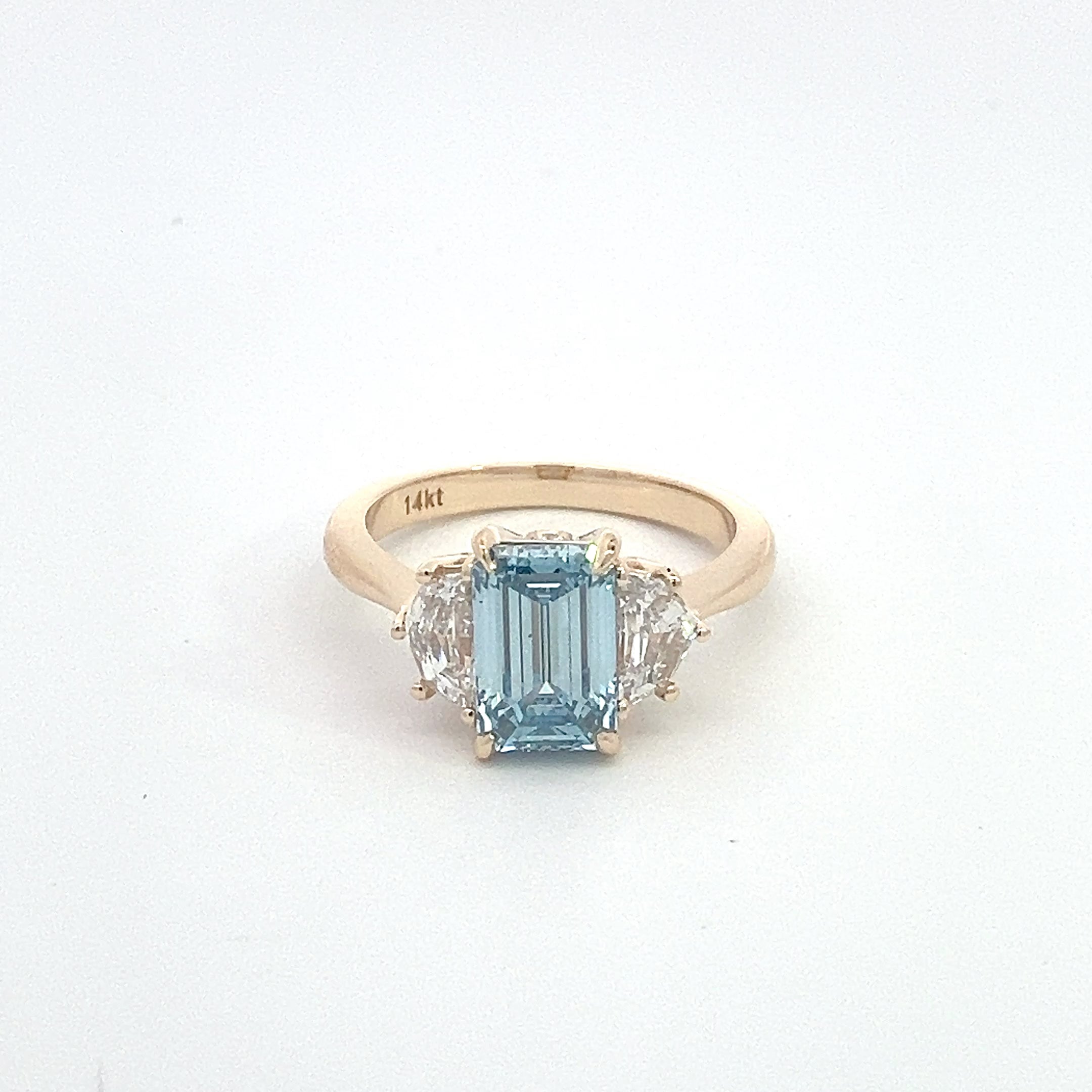 14K Y/G LAB GROWN BLUE & WHITE DIAMOND RING 3.00CT EMERALD CUT