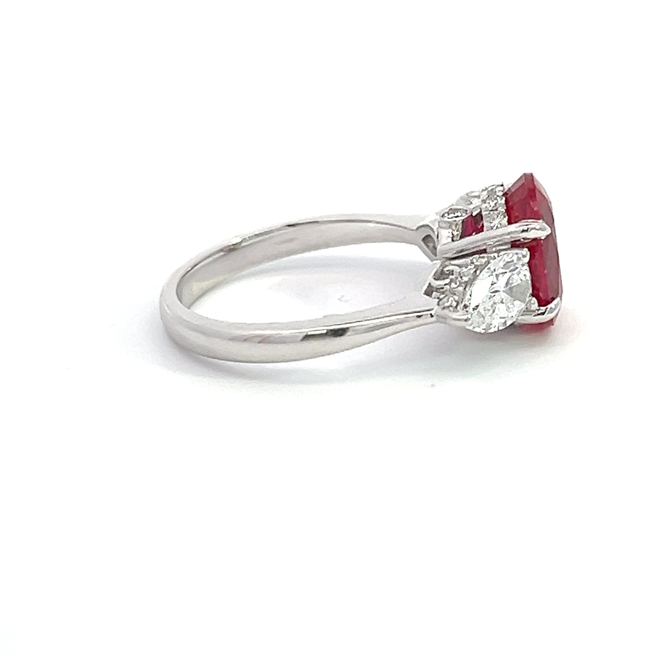 An exquisite engagement ring featuring lab grown ruby with lab grown pear diamonds set in 14K white gold. Elegantly crafted to symbolize timeless love and commitment.