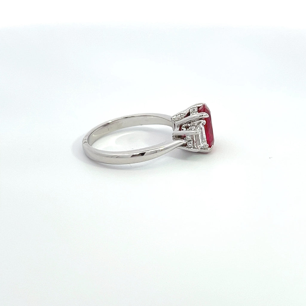 An exquisite engagement ring featuring a ruby set in 14K white gold. Elegantly crafted to symbolize timeless love and commitment.
