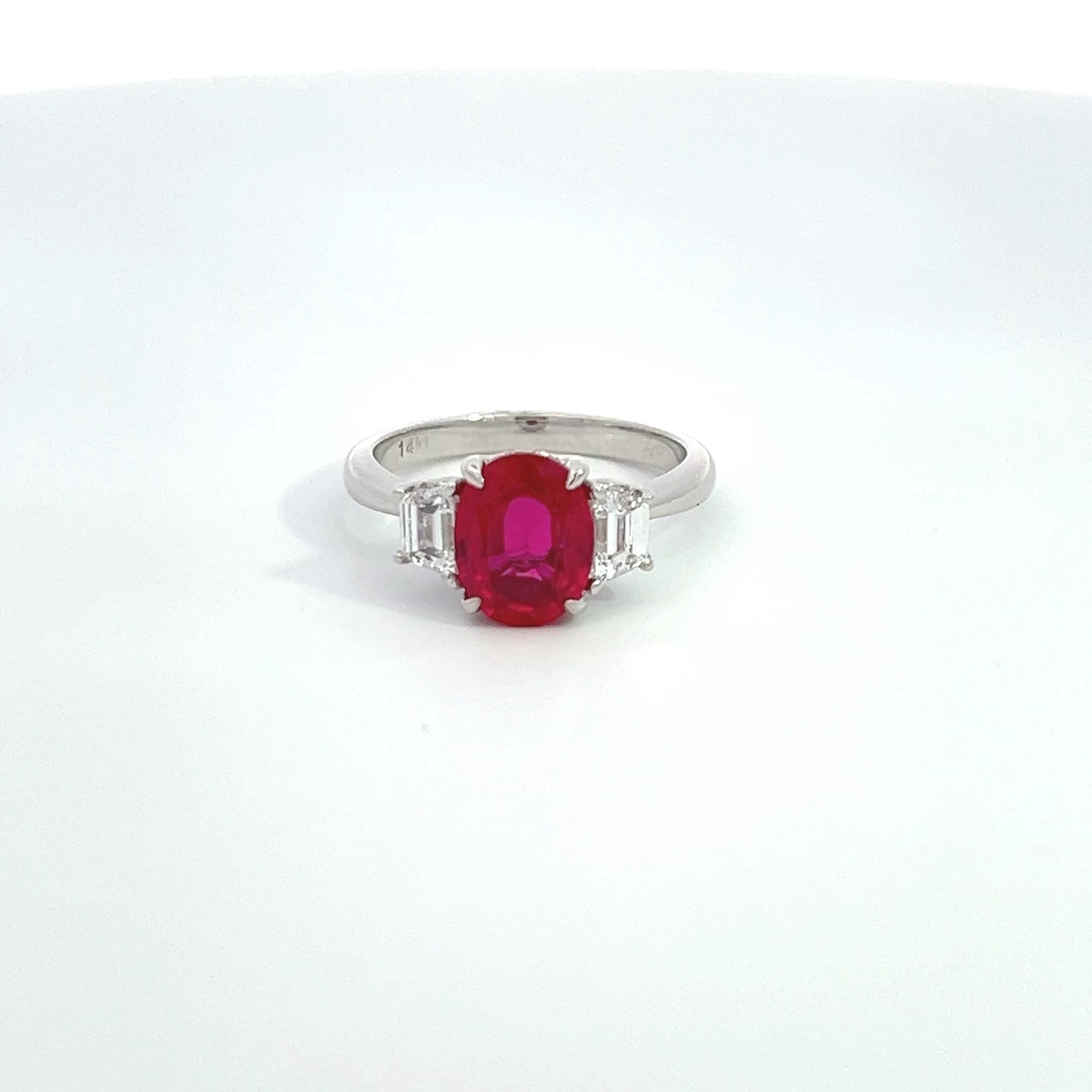 14K W/G LAB GROWN RUBY/DIAMOND RING 3.00CT