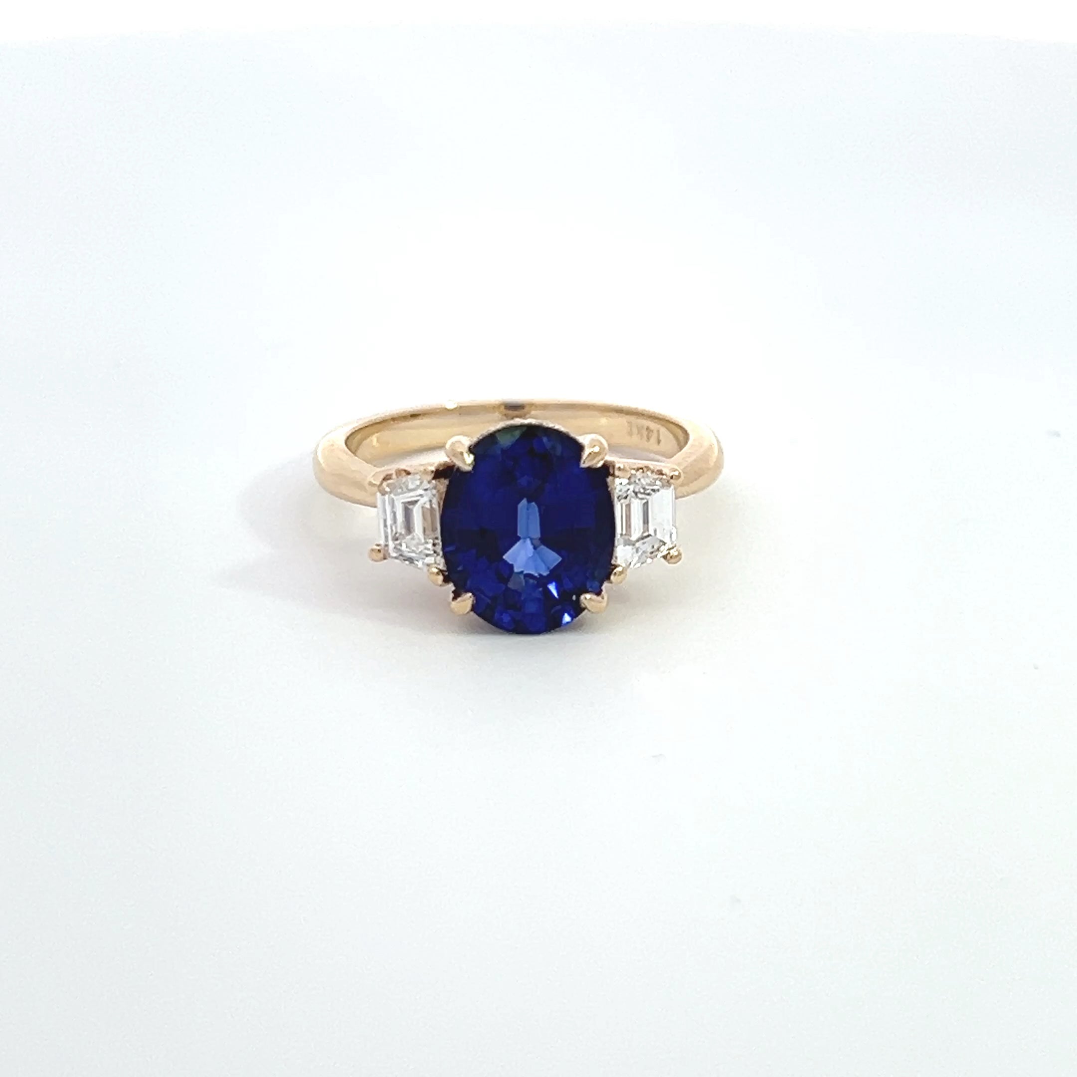 14K Y/G LAB GROWN SAPPHIRE/DIAMOND RING 3.50CT