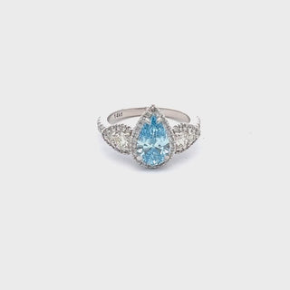 14K W/G LAB GROWN BLUE & WHITE DIAMOND 1CT PEAR CUT
