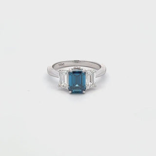 14K W/G LAB GROWN BLUE & WHITE DIAMOND 2.5CT EMERALD CUT