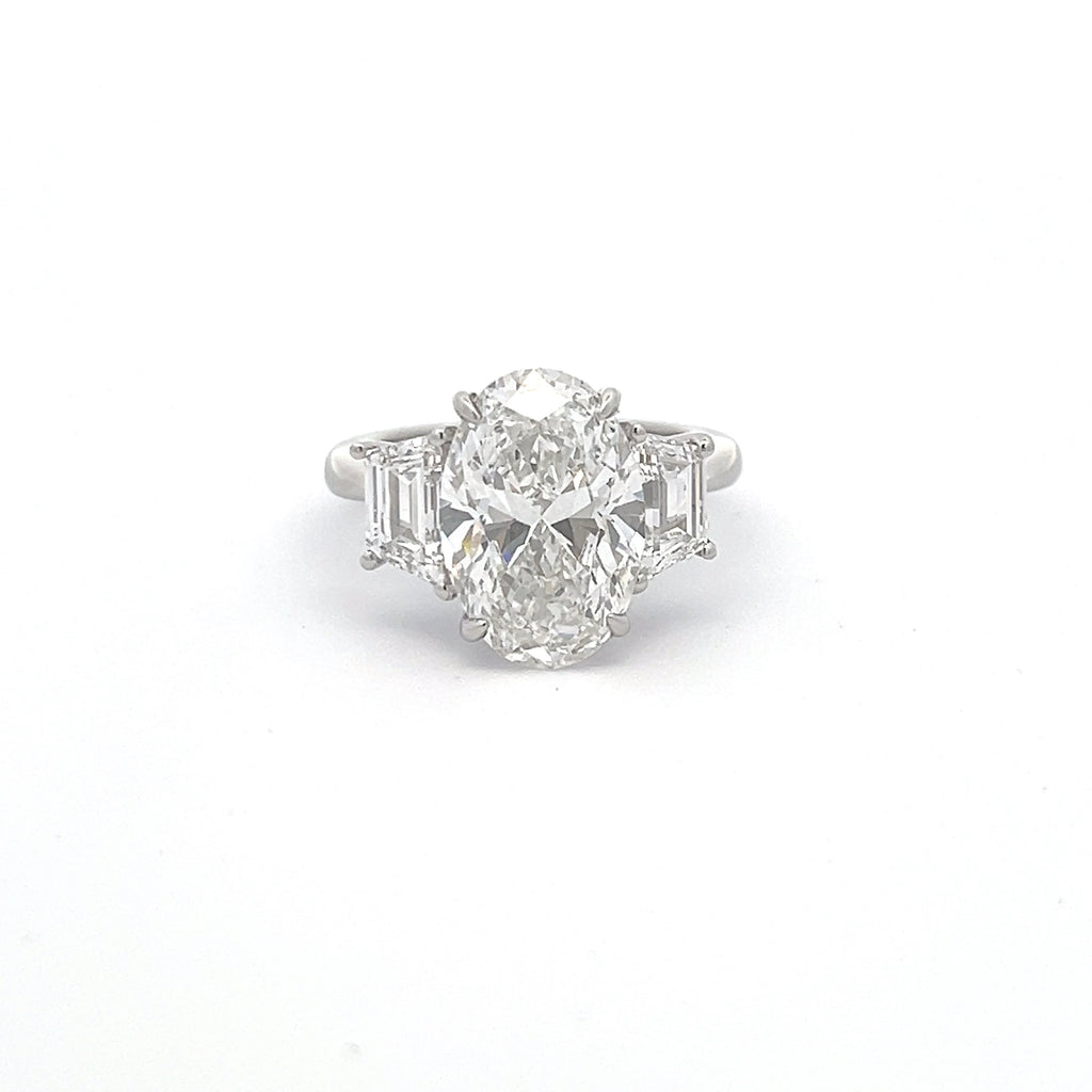 An exquisite engagement ring featuring brilliant oval cut diamond set in platinum. Elegantly crafted to symbolize timeless love and commitment.