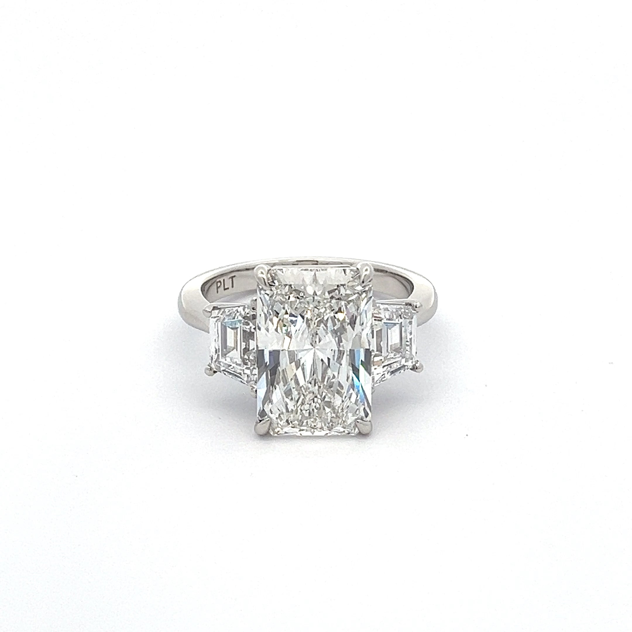 An exquisite engagement ring featuring brilliant radiant cut diamond set in platinum. Elegantly crafted to symbolize timeless love and commitment.