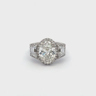 An exquisite engagement ring featuring brilliant oval cut diamond set in platinum. Elegantly crafted to symbolize timeless love and commitment.