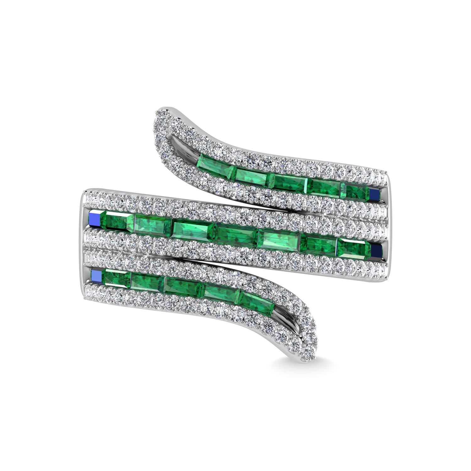 14K White Gold Diamond and Emerald 1 3/4 Ct.Tw. Fashion Ring
