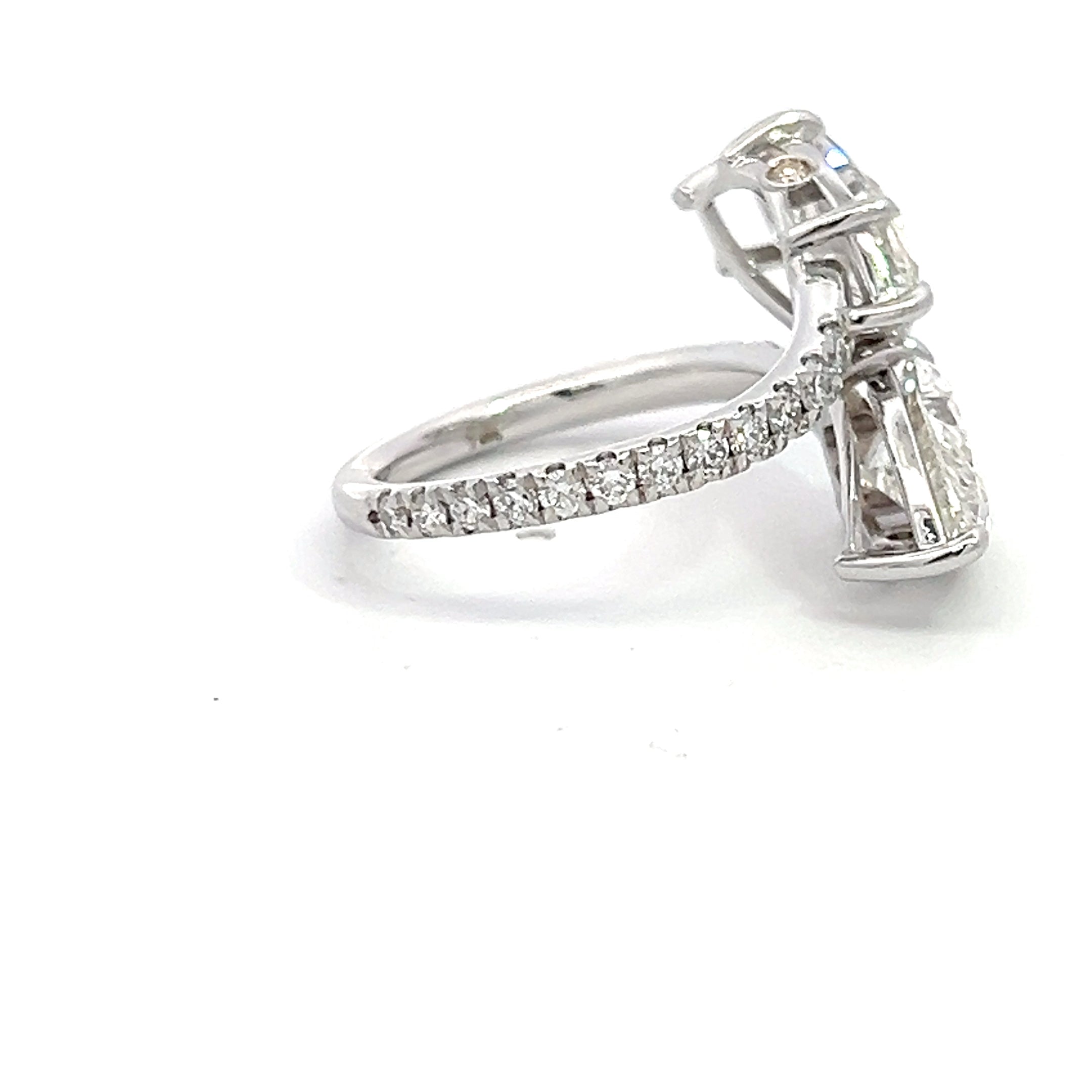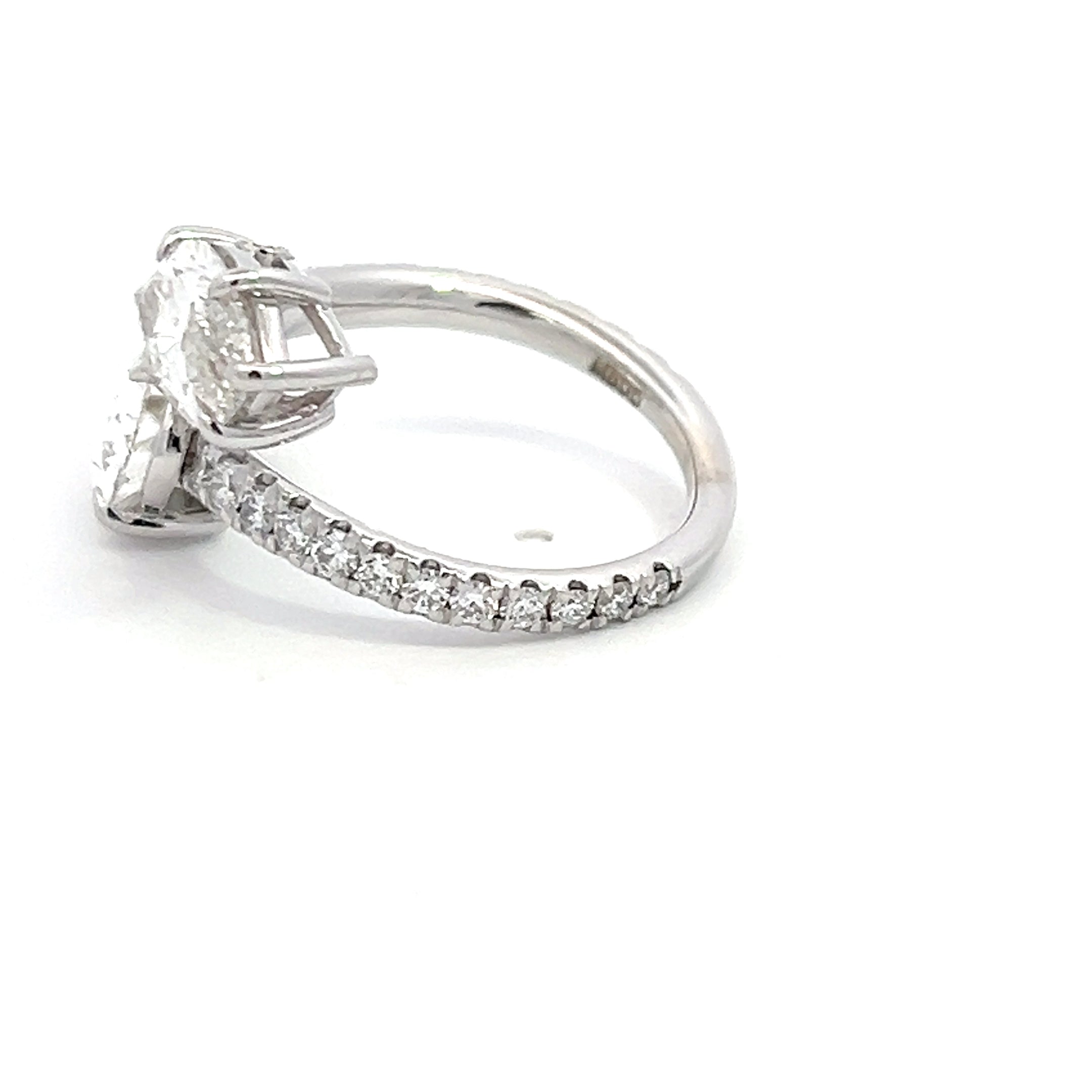 An exquisite engagement ring featuring brilliant marquise and pear cut diamond set in 14K white gold. Elegantly crafted to symbolize timeless love and commitment.