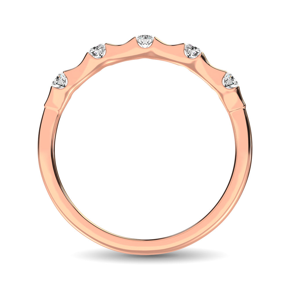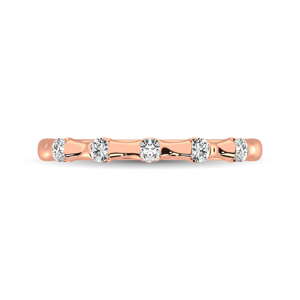 This Glamorous Stackable band Is Available In 14K Rose Gold. There Are 5 Round Diamonds With A Total Carat Weight Of 1/8 Ctw Set In A Channel Setting. Give a new look to your engagement ring !!!