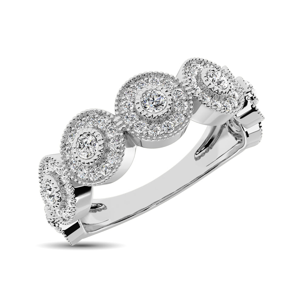 This glamorus ring is available in 14K White Gold. There are 91 round diamonds with a total carat weight of 1/2 ct set in a Bezel / Shared Prong setting.