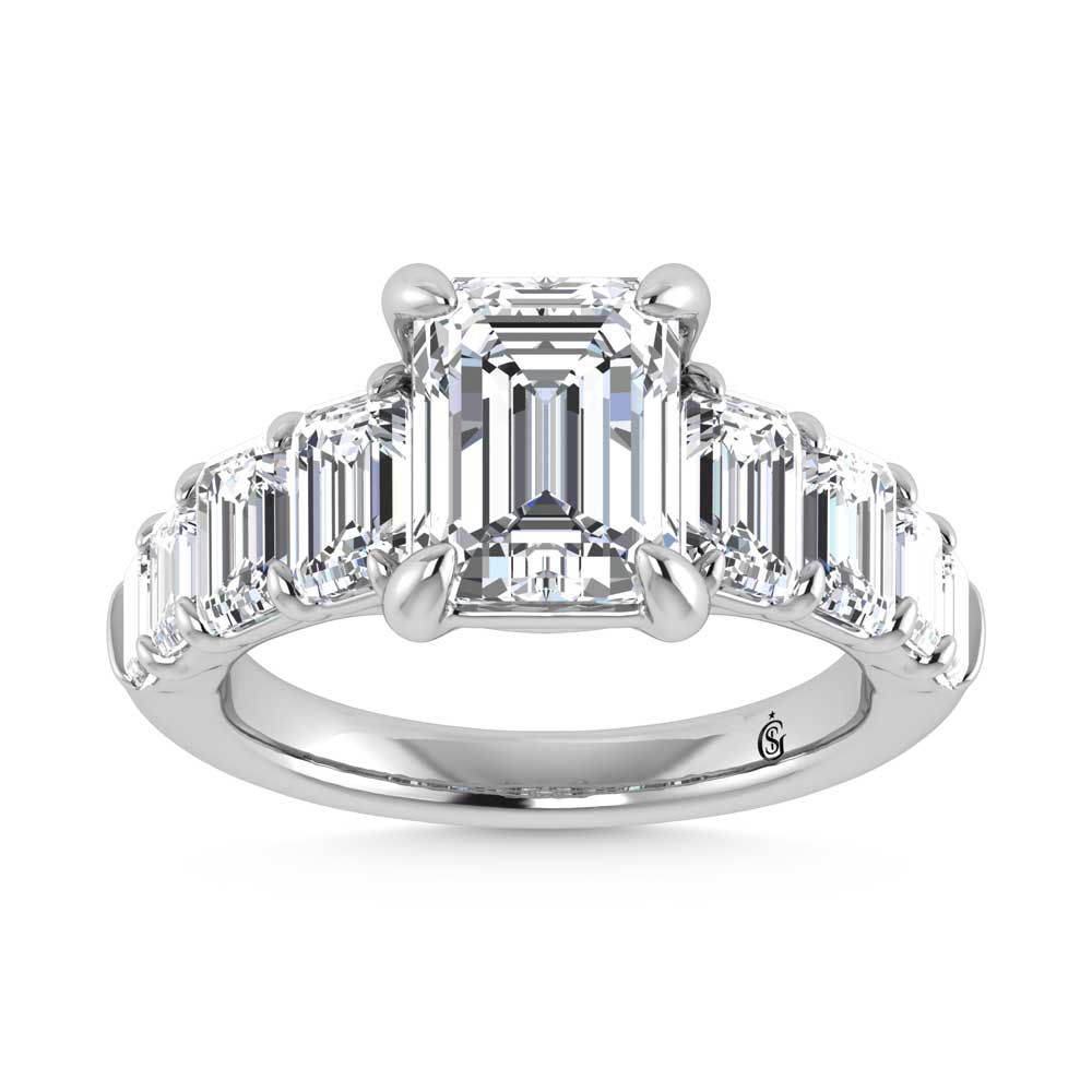 14K White Gold Lab Grown Diamond 5 1/2 Ct.Tw. Emerald Shape Engagement Ring