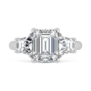 14K White Gold Lab Grown Diamond 4 1/5 Ct.Tw. Emerald Shape Three Stone Engagement Ring