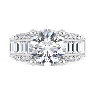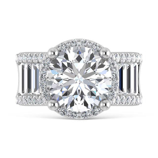 14K White Gold Lab Grown Diamond 8 Ct.Tw. Straight Baguette Shank Engagement Ring (Center Round)