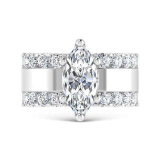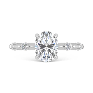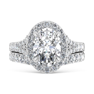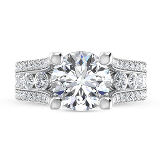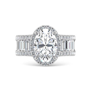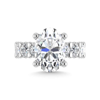 14K White Gold Labgrown Diamond 3 1/2 Ct.Tw. Three Stone Engagement Ring (Center Oval 2ct)