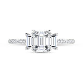 14K White Gold Lab Grown Diamond 2 5/8 Ct.Tw. Emerald Shape Three Stone Engagement Ring