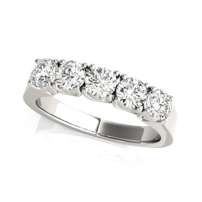 5 Stone Diamond Anniversary Band Shared Cross U Prong 14K Gold