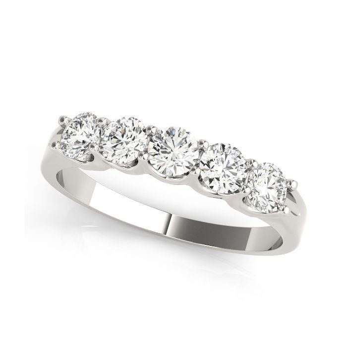 5 Stone Diamond Anniversary Band Shared U Prong 14K Gold