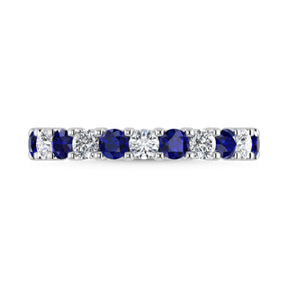 14K White Gold Machine Set Alternate Blue Sapphire and Diamond 5/8 Ct.Tw. Band