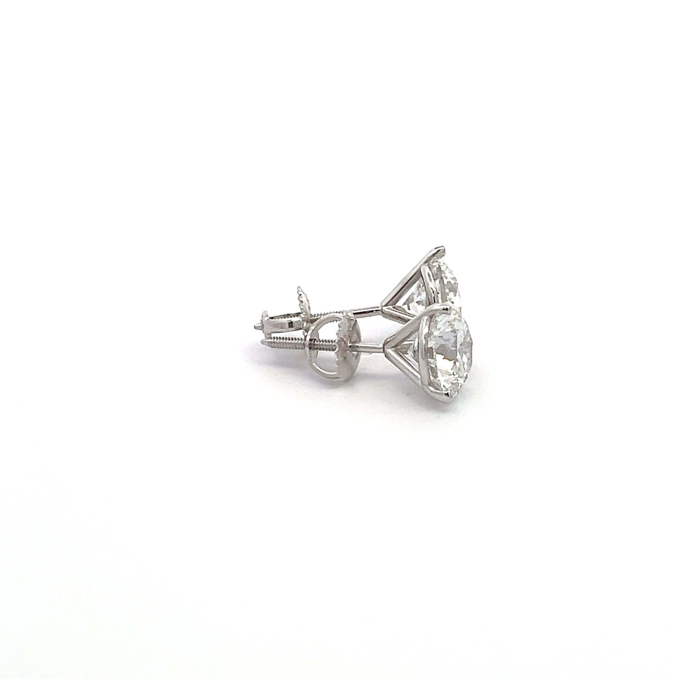 LAB GROWN DIAMOND MARTINI THREE PRONG SCREWBACK STUD EARRINGS - 4.00+ CARATS