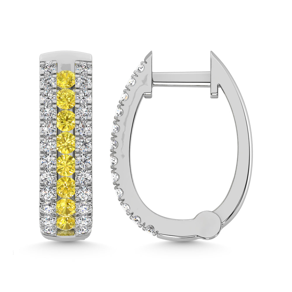 14K White Gold Lab Grown Diamond 1 Ct.Tw. Earrings (Center Row Yellow Diamond)