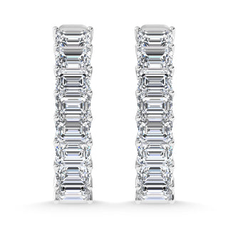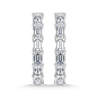 14K White Gold 6 Ct.Tw. Labgrown Diamond Vertical Emerald Shape In and Our Hoop Earrings