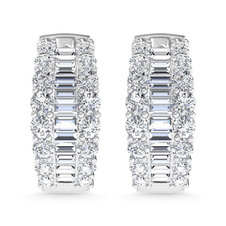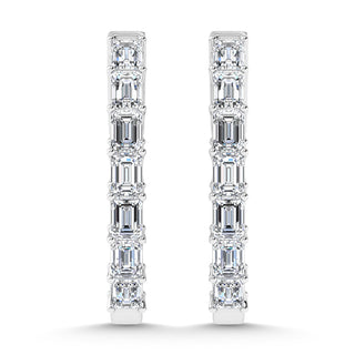 14K White Gold 2 3/4 Ct.Tw. Labgrown Diamond Vertical Emerald Shape In and Our Hoop Earrings