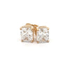 These earrings are crafted in 14k gold and feature a basket setting with two cushion brilliant cut lab grown diamonds with pushback backings.