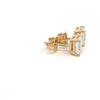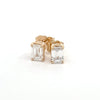 These earrings are crafted in 14k gold and feature a basket setting with two emerald brilliant cut lab grown diamonds with pushback backings.