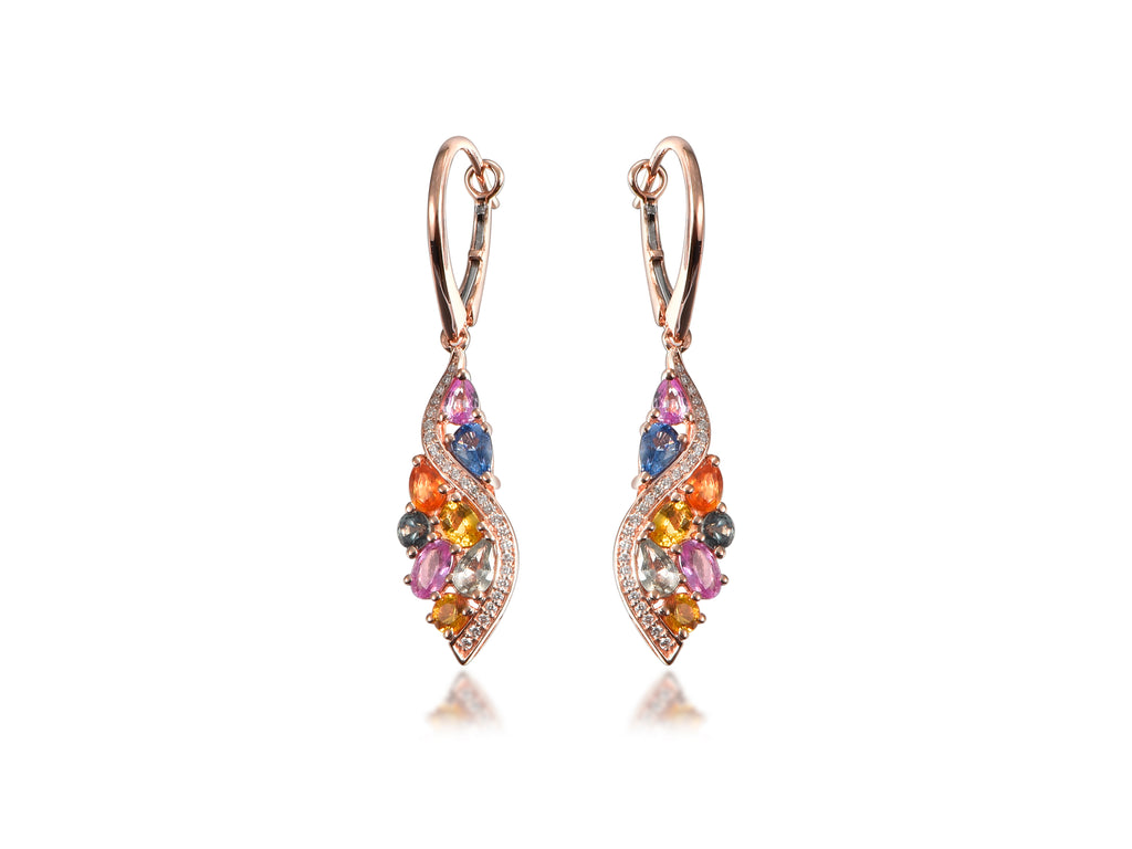 14K ROSE GOLD MULTI-SAPPHIRE EARRINGS 3.50CT