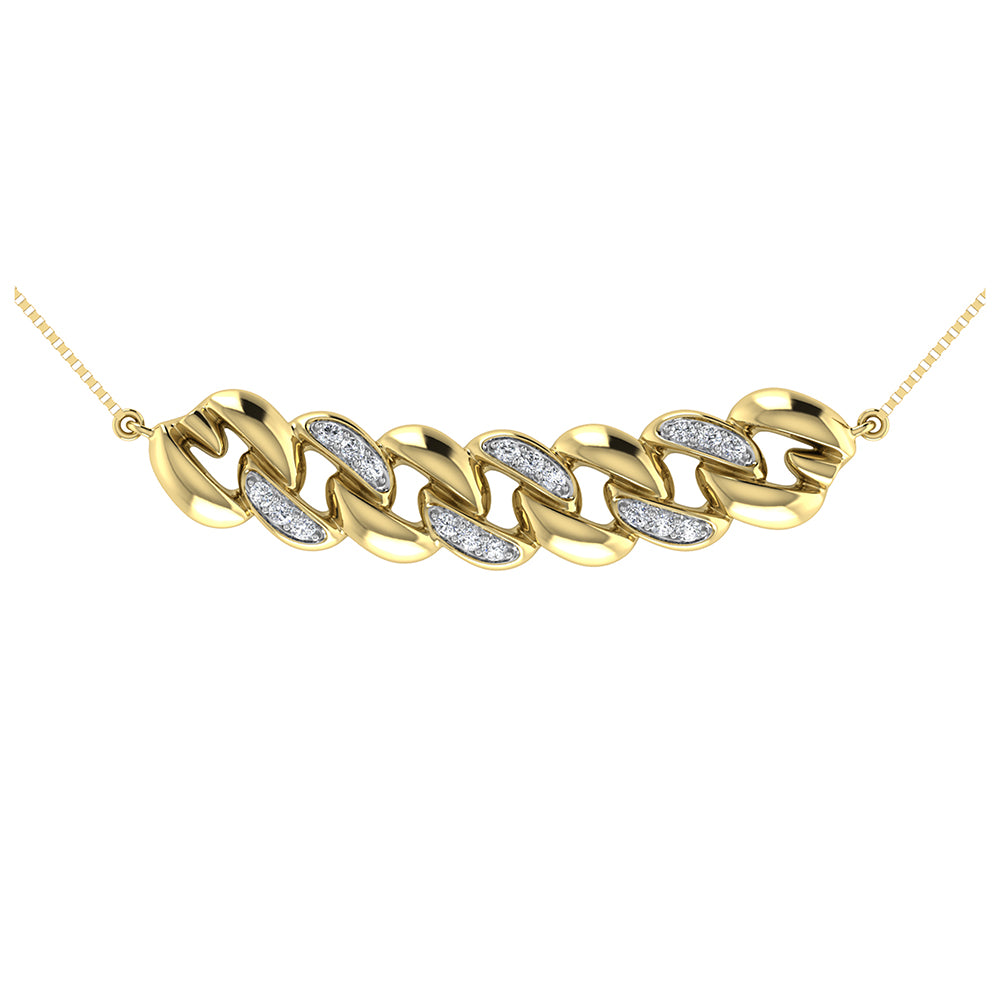 10K Yellow Gold 1/20 Ct.Tw. Diamond Cuban Style Necklace