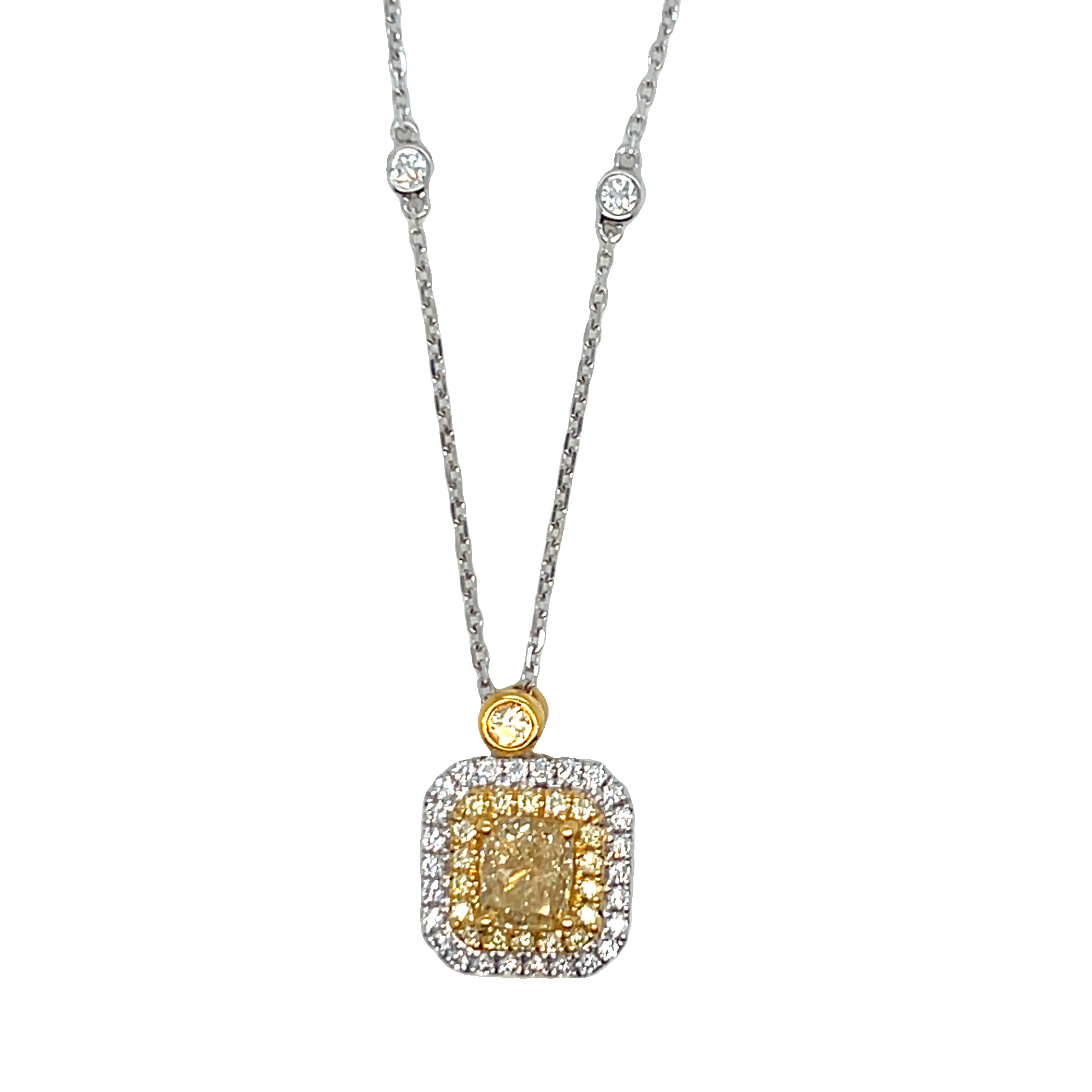 18K TWO TONE NATURAL CANARY DIAMOND NECKLACE - 1.00+CARATS