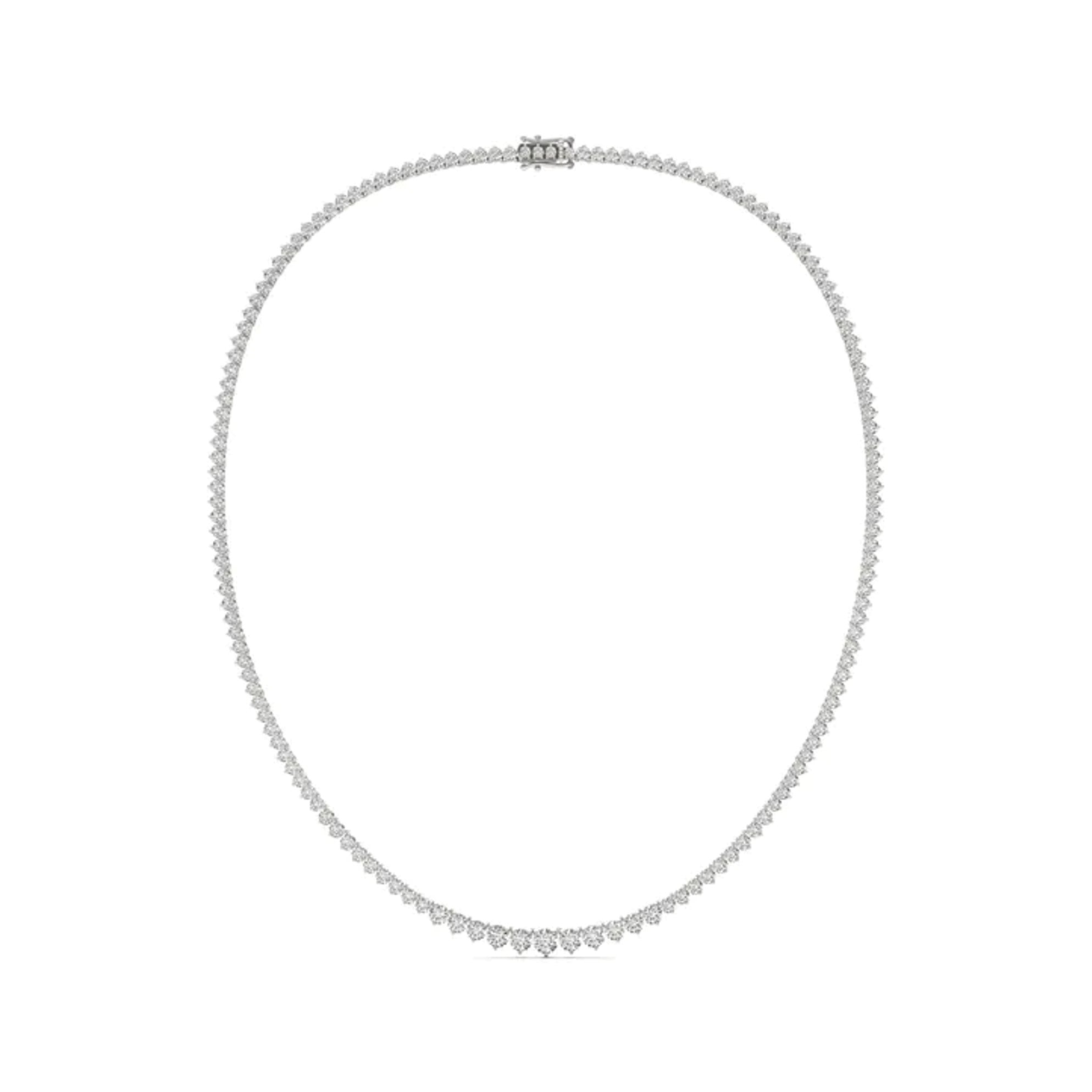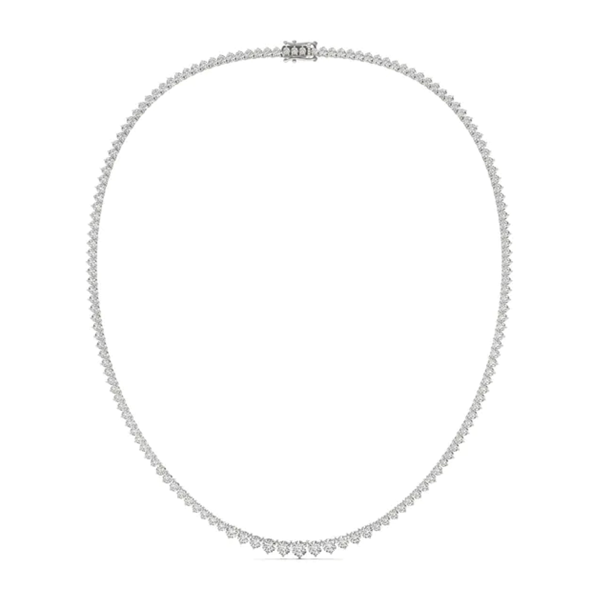 This graduated tennis necklace is absolutely gorgeous. Suitable for any occasion, this diamond tennis necklace features lab grown round brilliant cut diamonds.