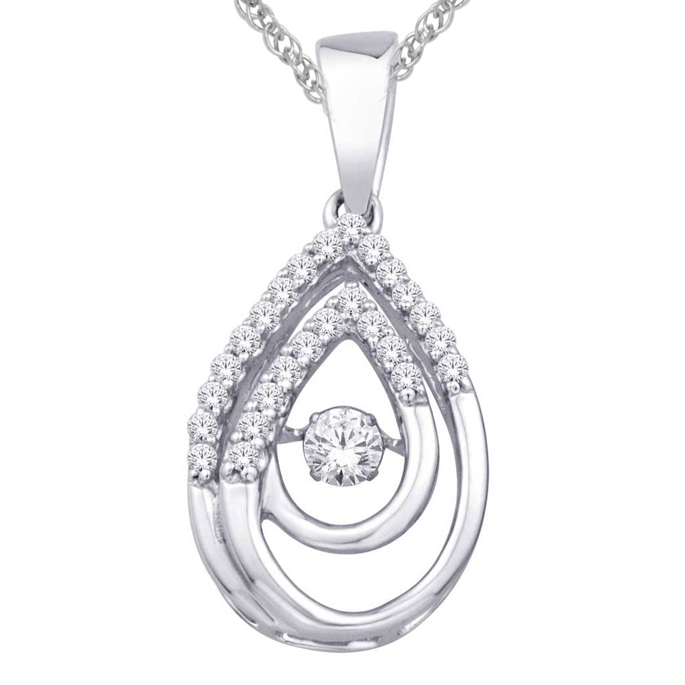 This Elegant Pendant Is Crafted From 10K White Gold And Adorned With Moving Diamonds Weighing Approximately 1/5 Ct. This Beautiful Pendant Is The Best Gift A Girl You Love! The Center diamond glistens in a unique setting that moves with every beat of her heart and every turn of her head.