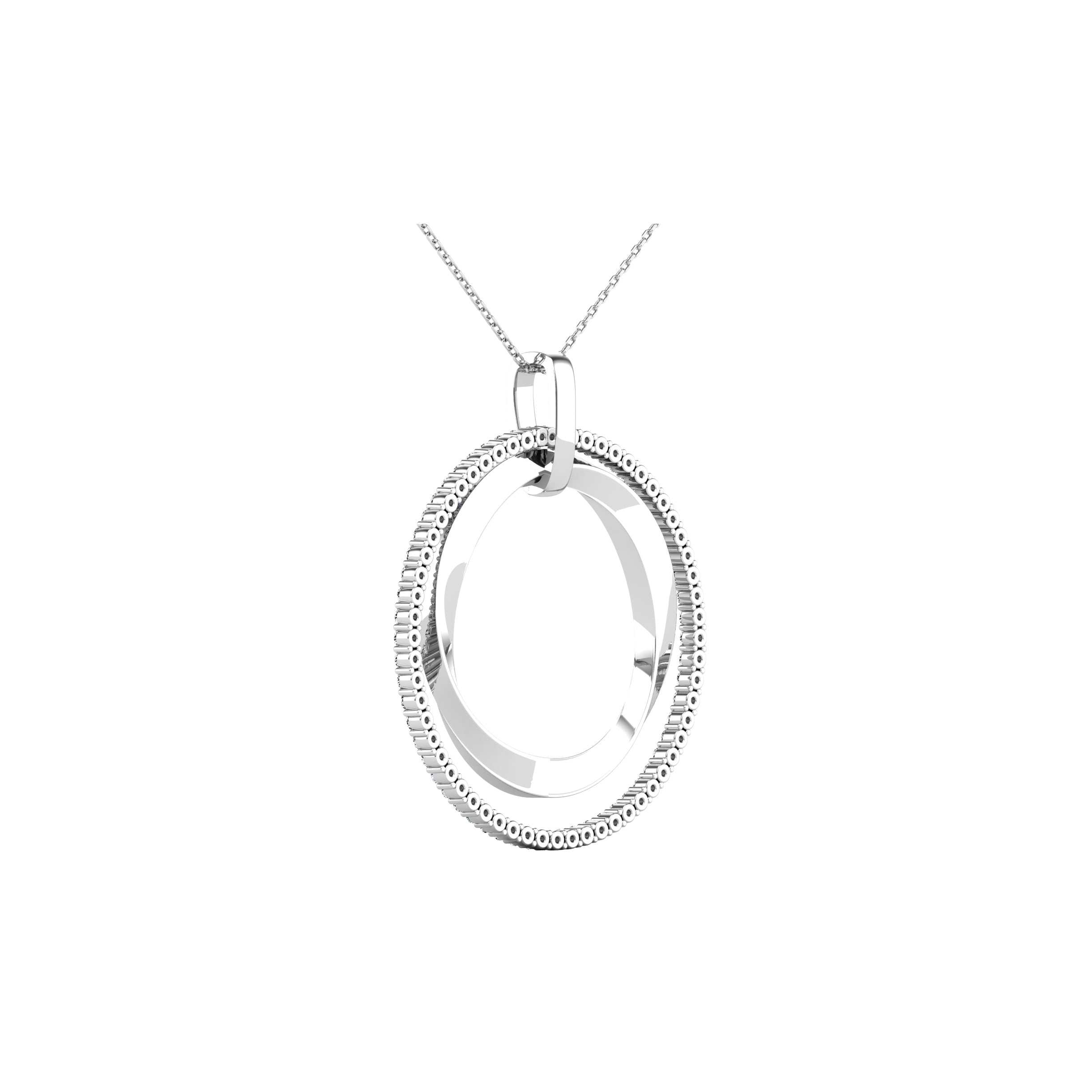 This beautiful pendant is available in 14K White Gold. There are 59 round diamonds with a total carat weight of 1/2 ct set in a Prong setting.
