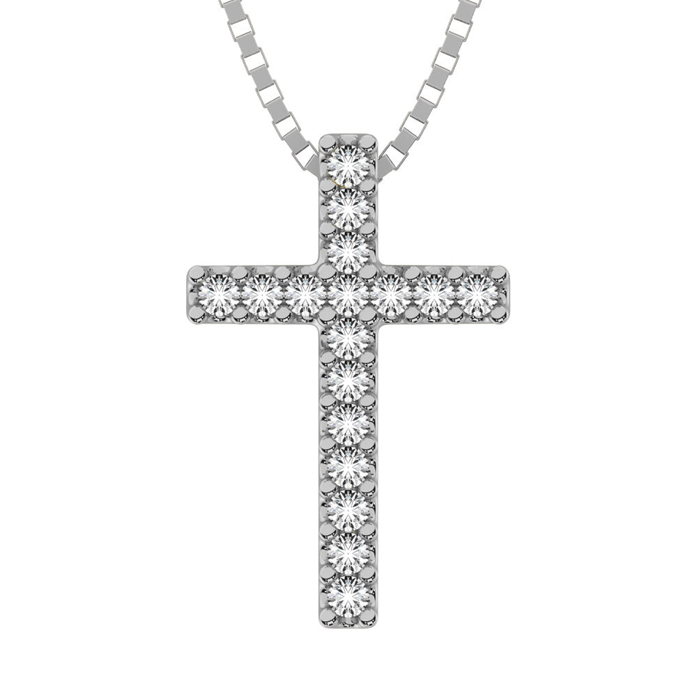 Classic Diamond Cross Pendant 1/10 Ct.Tw. In 10K White Gold