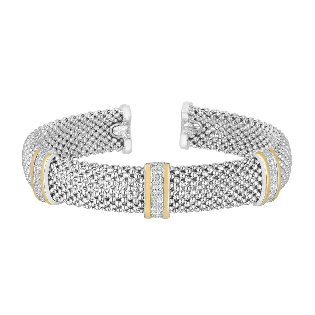Sterling Silver & 18K Gold .39Ct Diamond Bar Cuff
