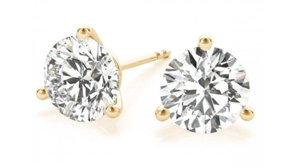 Diamond Stud Earrings Three Prong 14K Gold Martini Setting