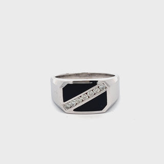 14K WHITE GOLD ONYX DIAMOND RING 0.30 CTS