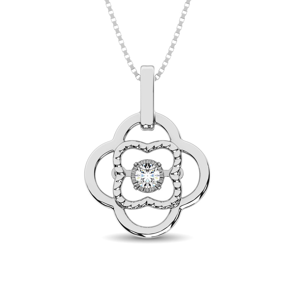 This stunning pendant is available in Sterling Silver. There is 1 round diamond accent set in a prong setting.