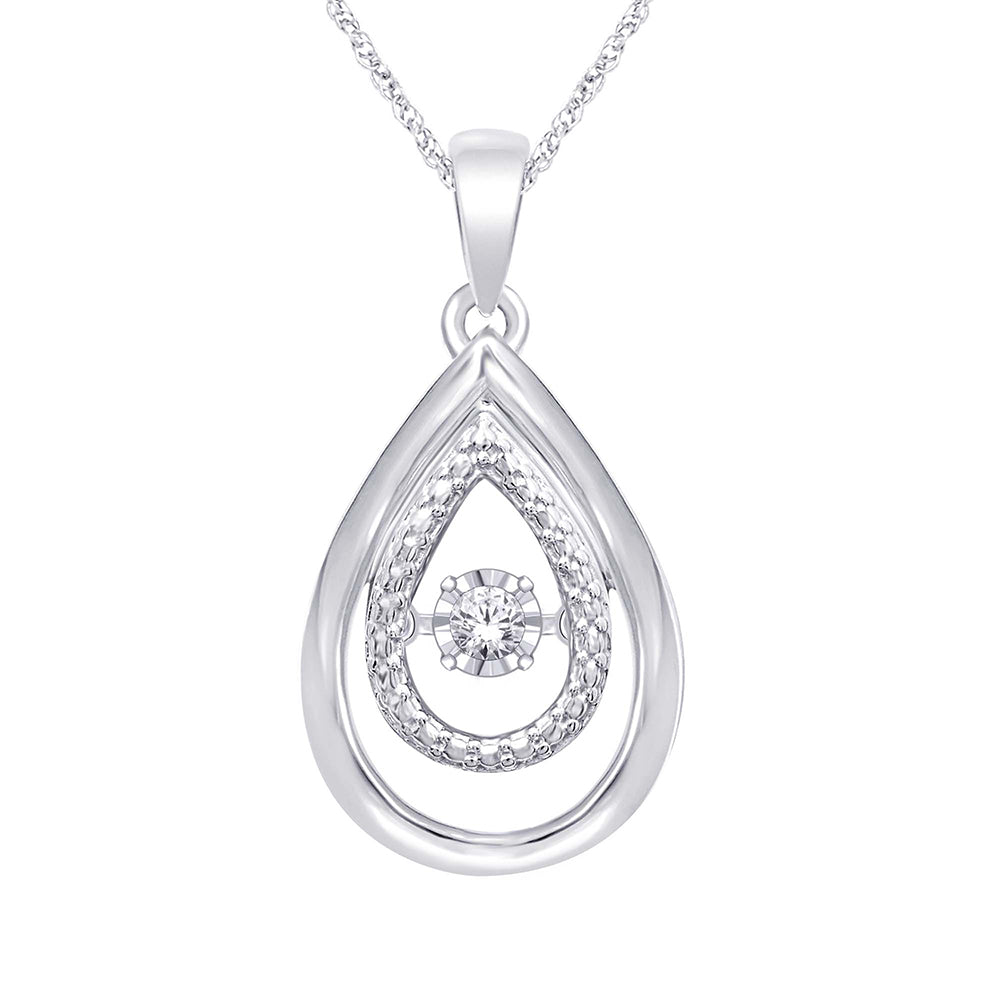 This Elegant Pendant Is Crafted From Sterling Silver And Adorned With Moving Diamond accents. This Beautiful Pendant Is The Best Gift A Girl You Love! The Center diamond glistens in a unique setting that moves with every beat of her heart.